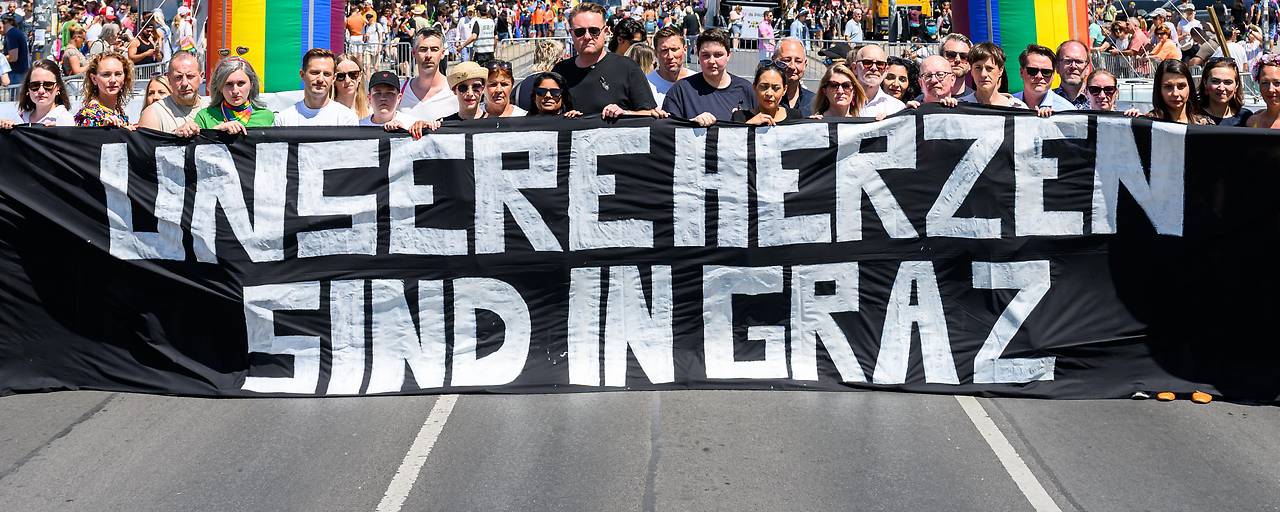 أما Katharina Kacerovsky-Strobl (كاثرينا كاتسرُفسكي-شتروبل)، منظمة فعالية Vienna Pride، فقد أكدت أن إلغاء الفعالية لم يكن خياراً مطروحاً، لكنها شددت على أهمية إحياء ذكرى الضحايا، قائلة: «علينا أن نُحيي ذكرى الجريمة البشعة في غراتس. ففي وقت تُعاد فيه حقوق ووجود مجتمع LGBTIQ+ لتكون موضوعاً للنزاع السياسي في بعض البلدان، لا بد من رفع الصوت من أجل التضامن».
