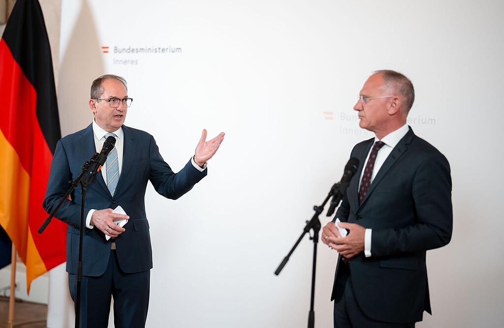 بحث وزير الداخلية النمساوي غيرهارد كارنر (Gerhard Karner) ونظيره الألماني الجديد ألكسندر دوبريندت (Alexander Dobrindt) بعد ظهر اليوم في فيينا سبل تعزيز التعاون الثنائي والمبادرات المشتركة على مستوى الاتحاد الأوروبي في مجال الهجرة، وأكدا تطابق المصالح بين البلدين في هذا الملف، خاصة فيما يتعلق بالتشديد على مراقبة الحدود ومكافحة الهجرة غير القانونية.
