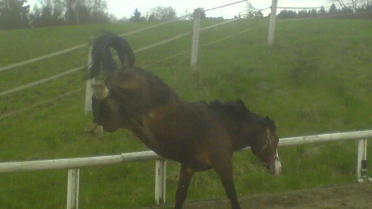 وفي لحظة غير متوقعة، يبدو أن الحصان أُصيب بحالة فزع لأسباب غير معروفة، ما دفعه إلى الرفس بكلتا ساقيه الخلفيتين، لتصيب إحدى الركلات المرأة بشكل مباشر.