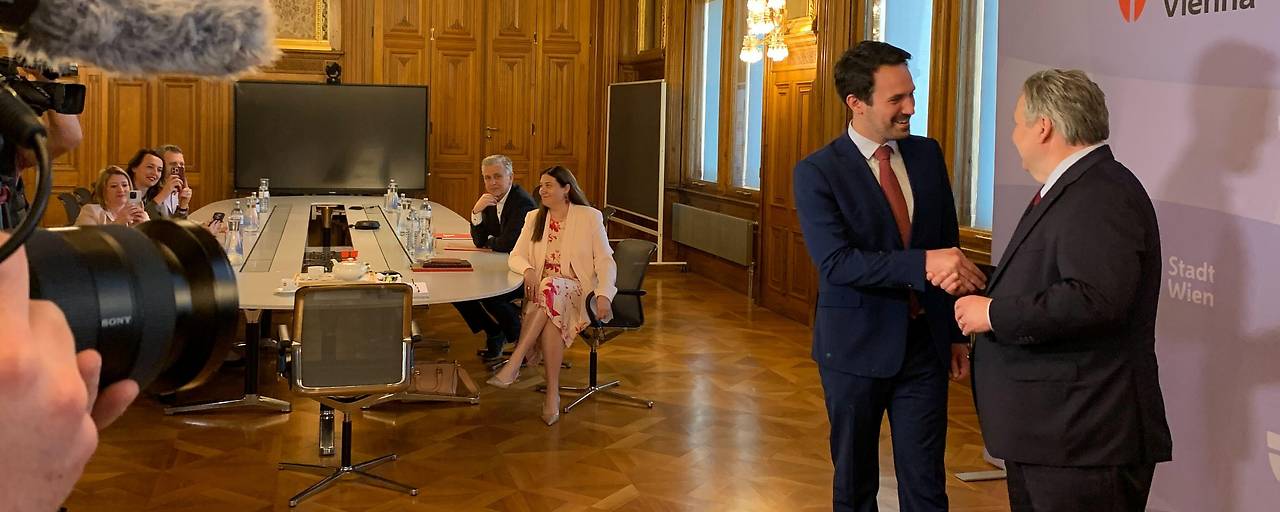وتولى وزير التعليم Christoph Wiederkehr عن حزب NEOS قيادة فريق التفاوض عن حزبه، ومن المتوقع أن تبقى Bettina Emmerling في منصب نائبة العمدة، وأكد الجانبان أن توزيع الحقائب الوزارية في الحكومة المحلية سيبقى على حاله تقريباً، دون الحاجة إلى تغييرات كبيرة.