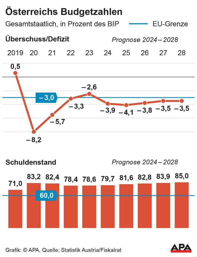 وبحسب وكالة الأنباء النمساوية (APA)، تتوقع الحكومة أن يتجاوز العجز في ميزانية العام 2025 حاجز 4% من الناتج المحلي الإجمالي، وهو ما يجعل النمسا عرضة لاحتمال بدء إجراءات عجز من قبل الاتحاد الأوروبي، وإذا اختارت الحكومة تطبيق مسار تقليص العجز خلال فترة أربعة أعوام، سيكون مطلوبًا منها تقليص حوالي 24.1 مليار يورو، أي ما يعادل توفير 6 مليارات يورو سنويًا. ولكن في حال اختارت الحكومة فترة أطول، تصل إلى سبع سنوات، سينخفض إجمالي المبلغ المطلوب إلى 18.1 مليار يورو، مما يخفف العبء المالي في السنوات الأولى من التنفيذ.