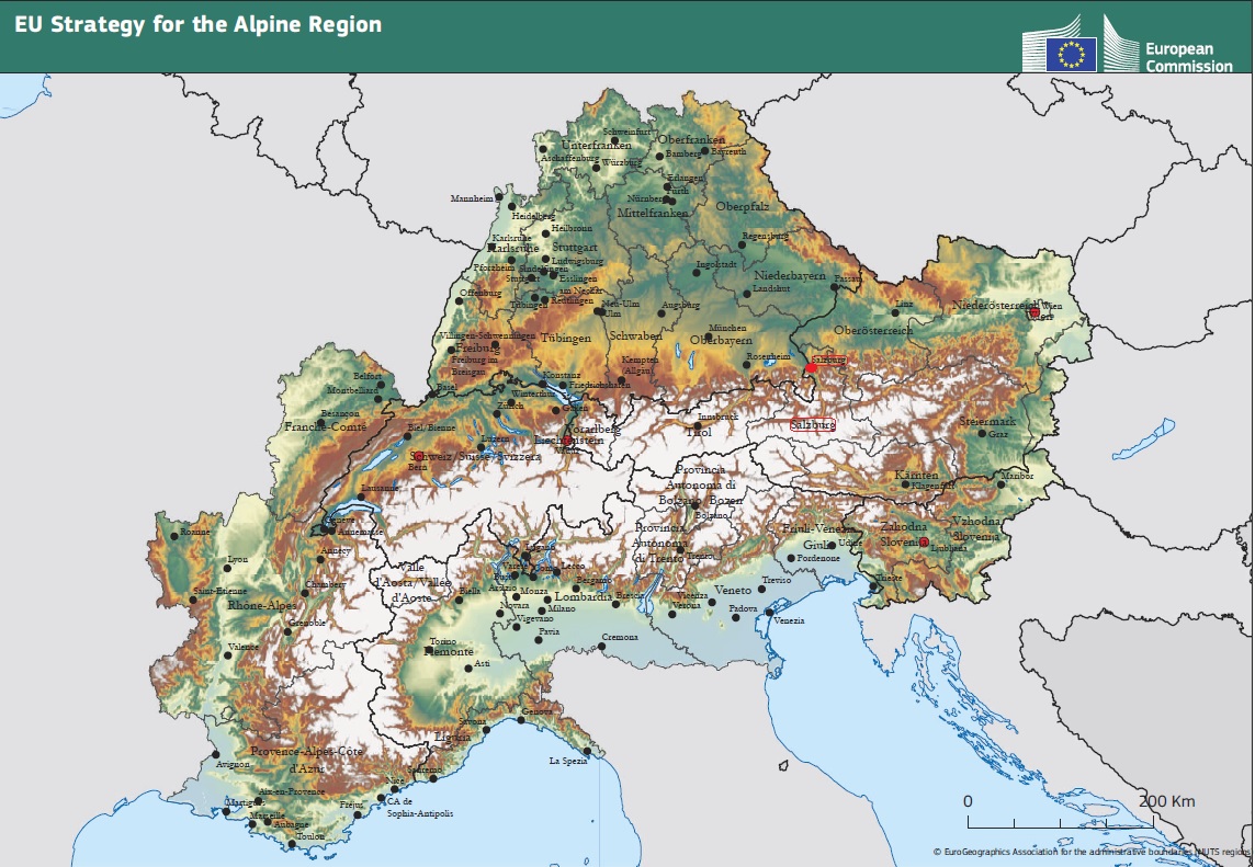 تهدف استراتيجية دول الاتحاد الأوروبي بمنطقة جبال الألب “EUSALP”، التي يسكن في محيطها أكثر من 80 مليون نسمة، إلى تطوير حلول مستدامة للمنطقة، التي تعد واحدة من أكبر المناطق المعيشية والطبيعية والاقتصادية في أوروبا، وتعزيز التعاون الإقليمي بين دول ومناطق جبال الألب، وذلك عن طريق تنفيذ مبادرات مبتكرة في مجالات التجارة والصناعة والطاقة والبنية التحتية والنقل وحماية البيئة والموارد.