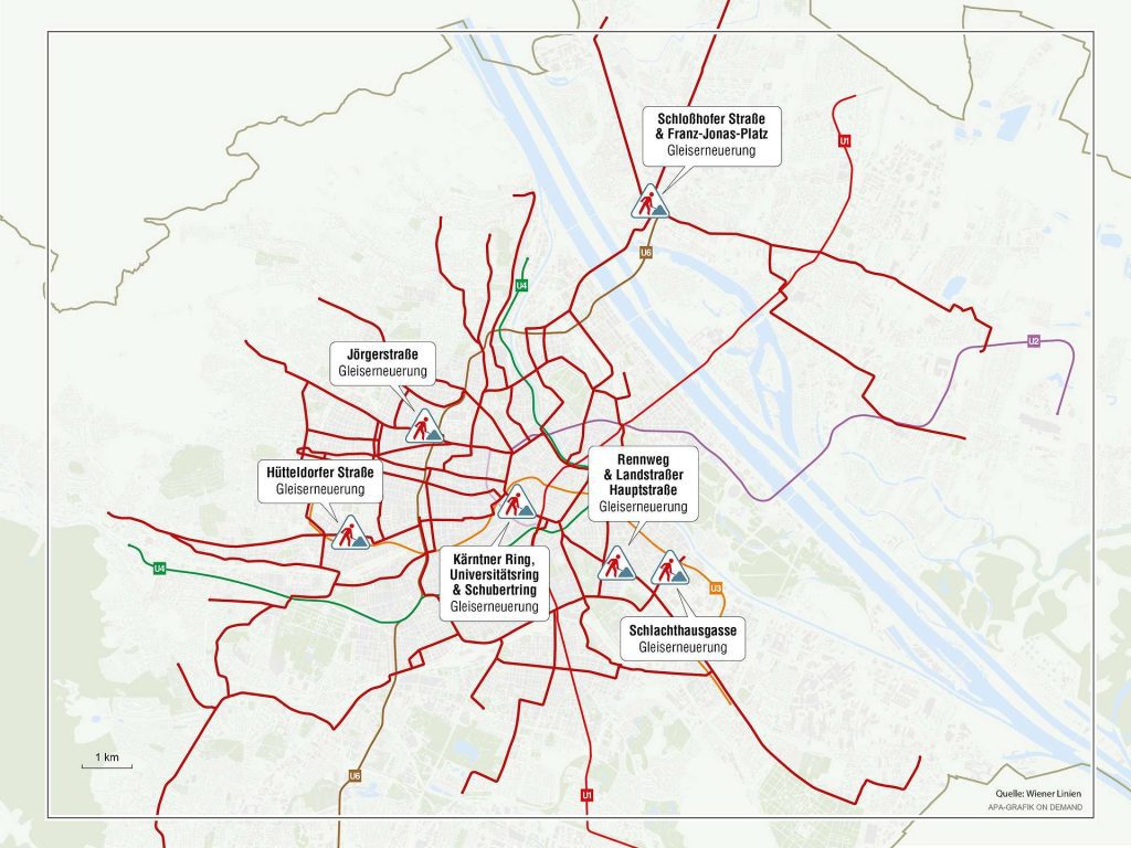 وفي شبكة الترام، ستواصل الخطوط الفيينية تجديد السكك الحديدية، حيث تم بالفعل استبدال 8.6 كيلومتر من السكك الحديدية و53 محولًا في عام 2024. في عام 2025، سيتم تجديد 11 كيلومترًا من السكك الحديدية، بالإضافة إلى استبدال 45 محولًا بهدف تقليل أماكن السير البطيء.