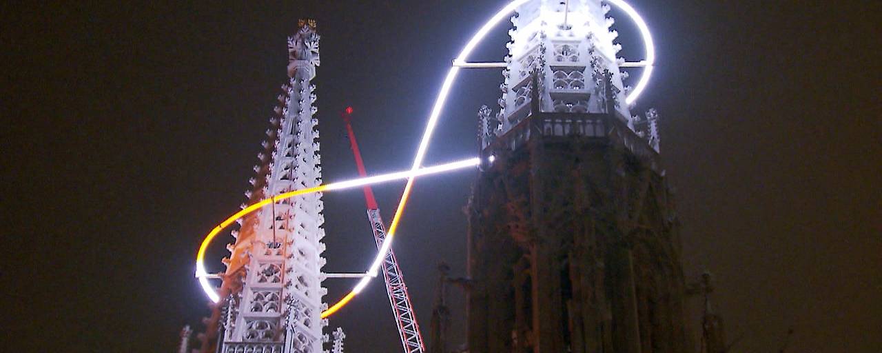 وقالت الفنانة، وهي من مواليد فيينا، إن الضوء يمثل بالنسبة لها جوهر الحياة، موضحة أن فكرة العمل انطلقت من رغبتها في جعل مفهوم اللانهاية مرئيا عبر الضوء، ليس بشكل تجريدي، بل كعنصر ملموس داخل الفضاء الحضري، وتحديدا بين برجي هذه الكنيسة.