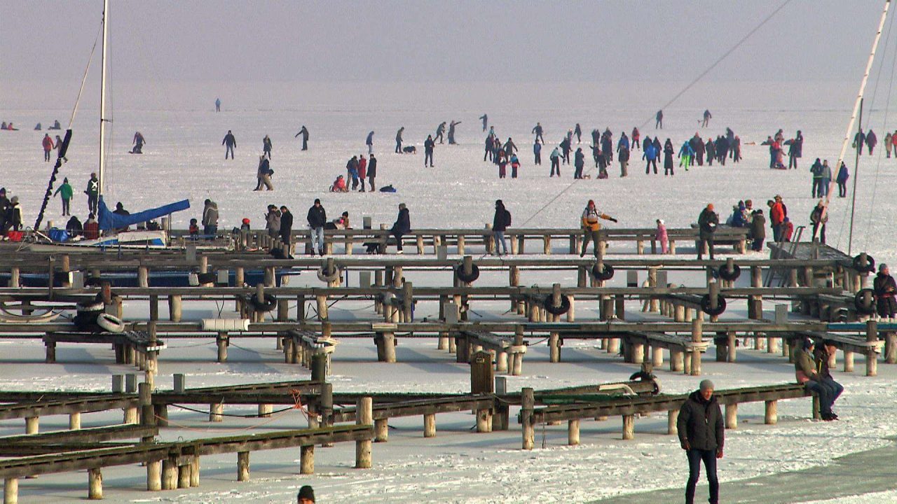 وفي خليج Ruster Bucht، احتشد مئات المتزلجين والمشاة يوم السبت للاستمتاع بالجليد تحت أشعة الشمس الساطعة، حيث أدت درجات الحرارة المتدنية المستمرة إلى زيادة سماكة الطبقة الجليدية، مما جعلها أكثر قدرة على التحمل، وهو ما استقطب أعداداً غفيرة من الراغبين في استغلال هذه الأجواء الشتوية.