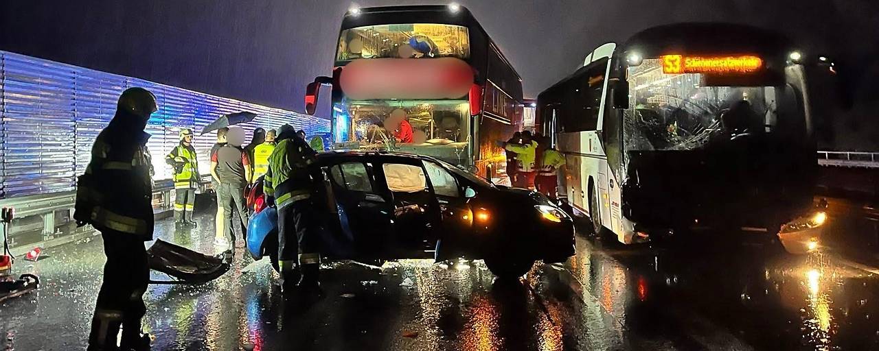 فيما بعد، لم يتمكن سائق حافلة كانت قادمة من التوقف في الوقت المناسب، فاصطدمت الحافلة بالسيارة المتوقفة، ما أدى إلى ارتداد الأخيرة إلى المسار الأول، حيث اصطدمت بسيارة ألمانية، والتي بدورها تعرضت لاحقًا لصدمة من حافلة ثانية.