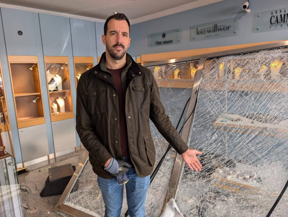 وذكرت الشرطة أن ثلاثة جناة على الأقل يُعتقد أنهم استخدموا مركبة للاصطدام بواجهة متجر المجوهرات، ما أدى إلى تحطيم الزجاج. وقد ترك الجناة السيارة في مكان الحادث وفروا.