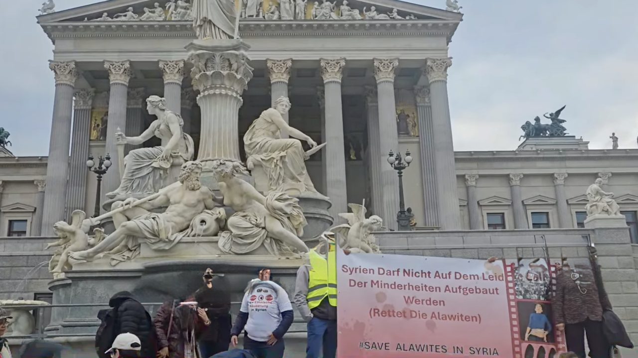تجمّع عدد من السوريين، مساء اليوم الإثنين، أمام مبنى البرلمان النمساوي في العاصمة فيينا، في تظاهرة سلمية تهدف إلى تسليط الضوء على قضايا حرية العقيدة والمواطنة، والدعوة إلى حماية المدنيين في مختلف المناطق السورية.