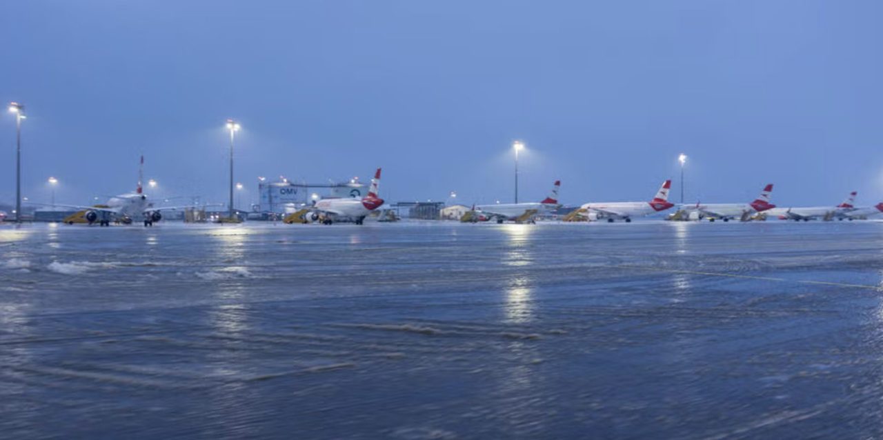 وأوصت إدارة المطار المسافرين بضرورة التحقق من حالة رحلاتهم عبر المواقع الإلكترونية لشركات الطيران، حيث تم تحويل الرحلات القادمة إلى مطارات بديلة مثل ميونخ، فرانكفورت، كولونيا، وفينيسيا. وأوضح المتحدث باسم المطار، Peter Kleemann، أن طبقة سميكة من الجليد تشكلت على المدارج ومناطق توقف الطائرات، وكانت تتجمد مجدداً فور إزالتها. كما أعلن مطار براتيسلافا المجاور عن إغلاقه لنفس الأسباب، في حين ظل مطار لينز مفتوحاً مع قيود تقنية تتعلق بمدى ثبات الطائرات على المدرج.