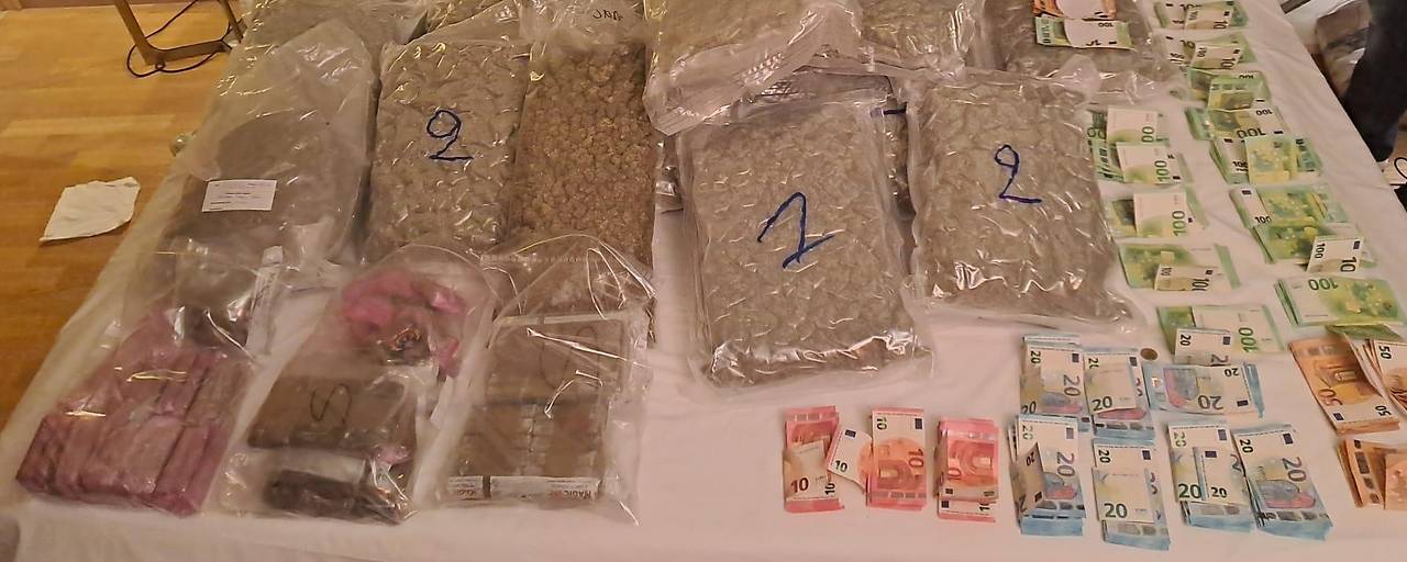 أسفرت التحقيقات عن ضبط كميات كبيرة من المخدرات، شملت 85 كيلوجرامًا من نبات القنب، 9.7 كيلوجرامًا من راتنج القنب، 511 جرامًا من MDMA، 237 جرامًا من الكوكايين، 5 جرامات من الميثامفيتامين، 27 حبة إكستاسي، 2.4 كيلوجرامًا من الكيتامين، بالإضافة إلى مبلغ نقدي قدره 52,979 يورو وسلاحين ناريين.