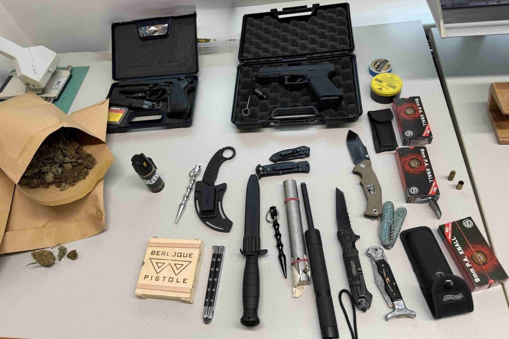 كما شملت المضبوطات عدداً من الأسلحة المحظورة، من بينها مسدسات صوتية (Schreckschusswaffen)، ورذاذ فلفل (Pfefferspray)، ومجموعة من السكاكين، على الرغم من قرار الحظر الصادر بحق المتهم.
