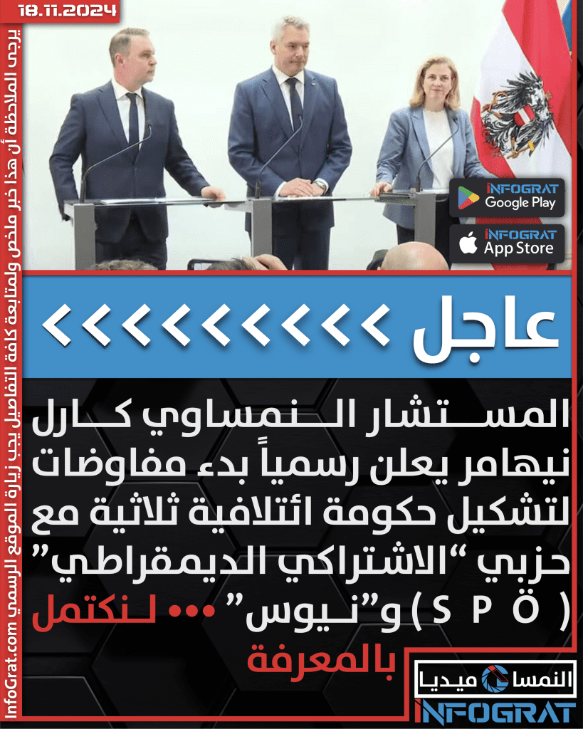 المستشار النمساوي كارل نيهامر يعلن رسمياً بدء مفاوضات لتشكيل حكومة ائتلافية ثلاثية مع حزبي “الاشتراكي الديمقراطي” (SPÖ) و”نيوس” ••• لنكتمل بالمعرفة
