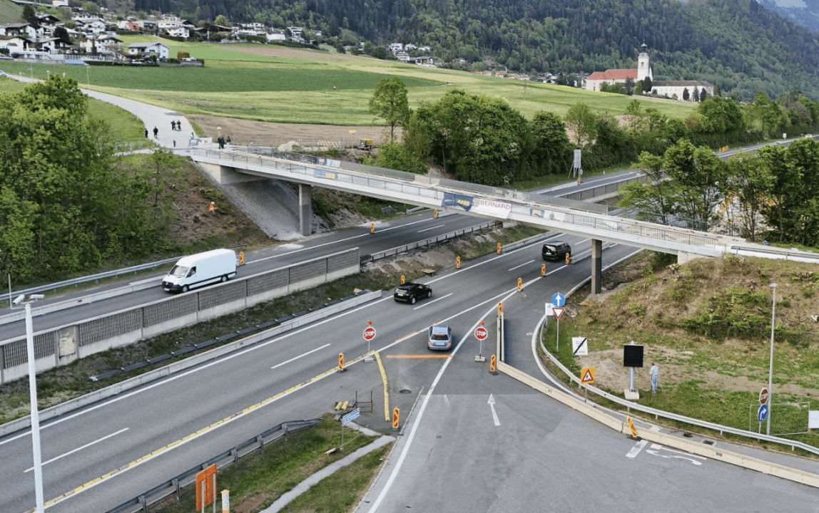 وكان من الضروري إغلاق الطريق السريع إينتال بالكامل في كلا الاتجاهين طوال الليل من أجل تنفيذ هدم جسر طريق الحقول المعروف باسم “شوتسنفيغ” (Schützenweg) القريب من محطة الاستراحة فومب. بدأت عملية الإغلاق عند الساعة الثامنة مساءً. وفي اتجاه إنسبروك (Innsbruck)، أعيد فتح الطريق السريع أمام حركة المرور صباح الأحد قبل الساعة السابعة بقليل. أما في اتجاه كوفسطاين (Kufstein)، فقد أعيد فتح الطريق منذ الساعة الثامنة وأربعين دقيقة صباح الأحد. وبالتالي، استغرقت الأعمال وقتًا أطول بقليل مما كان مقرراً.