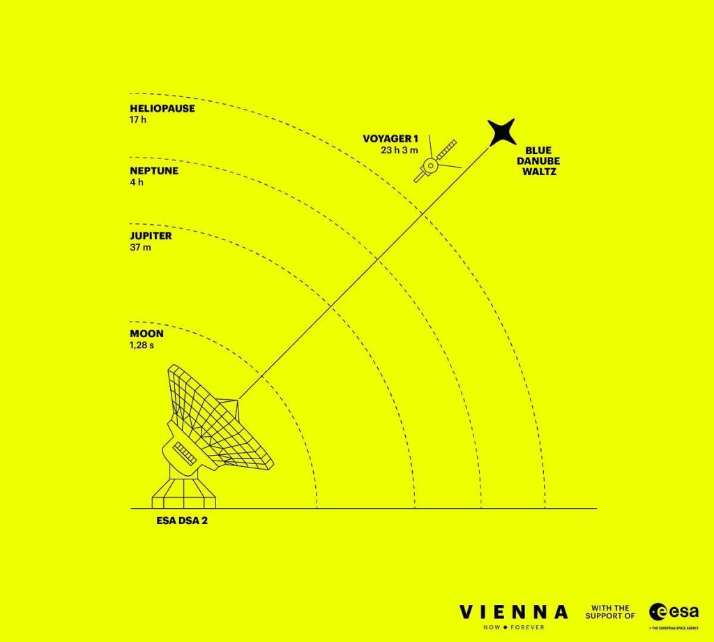شهدت العاصمة النمساوية فيينا مساء السبت حدثاً فنياً وتاريخياً غير مسبوق، حيث أرسلت منظمة الفضاء الأوروبية (ESA) بالتعاون مع هيئة السياحة في فيينا (WienTourismus) مقطوعة “دوناو فالزر” (Donauwalzer – An der schönen blauen Donau) للمؤلف الموسيقي النمساوي الشهير Johann Strauss Sohn إلى الفضاء بسرعة الضوء، احتفاءً بالذكرى الـ200 لميلاده.