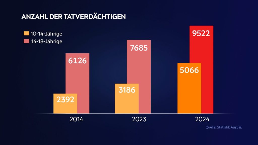 وبحسب وكالة الأنباء النمساوية (APA)، تشير العناوين الإعلامية المتكررة إلى تصاعد مقلق في معدلات العنف، والاعتداءات الجنسية، وحروب العصابات، والتخريب، وهو ما تؤكده الإحصائيات الرسمية الحديثة. فقد تضاعف عدد الأطفال المشتبه بارتكابهم جرائم، ممن تتراوح أعمارهم بين 10 و14 عاماً، من 2.392 حالة عام 2014 إلى 5.066 حالة عام 2024. كما ارتفع عدد المشتبه بهم في الفئة العمرية من 14 إلى أقل من 18 عاماً من 6.126 إلى 9.522 حالة في نفس الفترة.