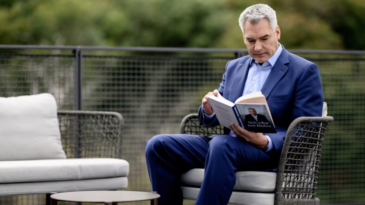 ويأتي هذا الظهور في مبنى “Red Bull Mediahaus” في فيينا، حيث تم إعداد غرفته الصحفية المطلة على تراس، ويتربع على الطاولة الزجاجية المستديرة كتابه الجديد بعنوان “Sich selbst treu bleiben” (البقاء وفياً للذات)، والذي صدر عن دار “EcoWing Verlag”، وتحدث Nehammer عن البيئة التي نشأ فيها كتابه، مشيراً إلى أنه يحب “هذه التركيبة من الخشب والزجاج” حيث “وُلد كتابي هنا”.