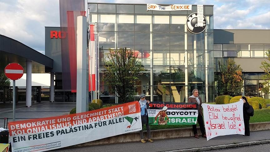 مؤيدو فلسطين يتظاهرون أمام مصنع في Wels بالنمسا العليا رفضاً لتوريد مكونات عسكرية لإسرائيل