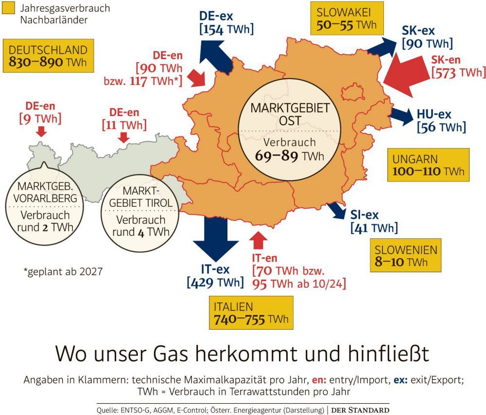 أدى تقليص توريد الغاز الروسي إلى أوروبا منذ بداية الحرب في أوكرانيا إلى تقليص الاعتماد على الغاز الروسي بشكل تدريجي. وفقًا لبيانات الاتحاد الأوروبي، انخفضت حصّة الغاز الروسي من إجمالي الواردات إلى أوروبا بنسبة 70%، وتم تعويض هذه الكميات بواسطة واردات من دول أخرى مثل النرويج، الولايات المتحدة، والمملكة المتحدة. وفي حال توقف توريد الغاز الروسي نهائيًا، وهو ما قد يحدث بعد انتهاء عقد مرور الغاز بين روسيا وأوكرانيا في يناير 2025، من المتوقع أن تعتمد النمسا على المخزونات الاستراتيجية والغاز المستورد من ألمانيا وإيطاليا. ومع ذلك، من المتوقع أن يؤدي هذا التغيير إلى زيادة الأسعار بنسبة تتراوح بين 10% و40%.