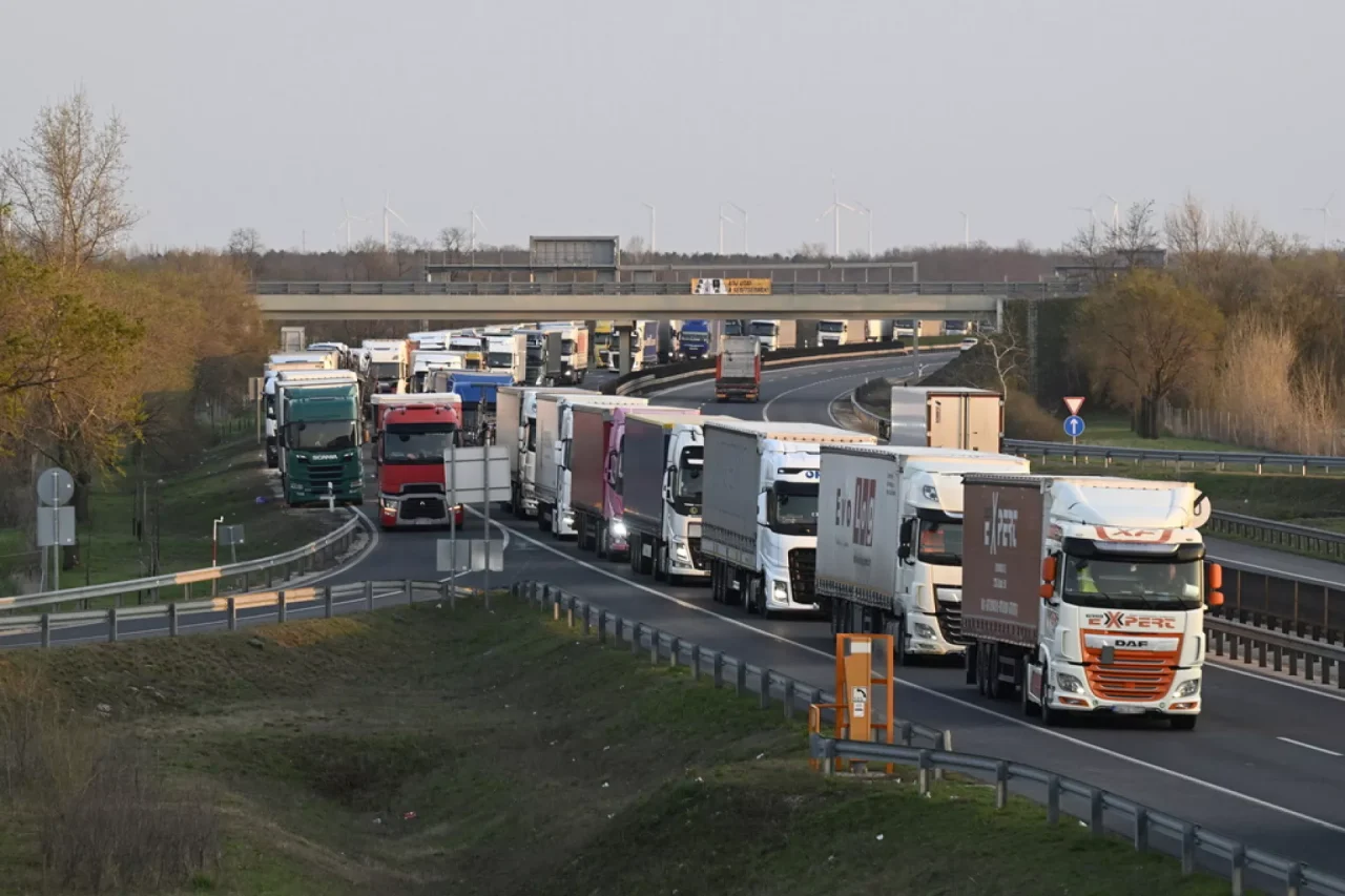 وقد التُقطت صور لشاحنات مصطفة على الطريق المؤدي إلى معبر Rajka الحدودي بين المجر وسلوفاكيا يوم الخميس 27 مارس/آذار 2025، في مشهد يعكس الضغط الشديد على شبكات النقل والمعابر نتيجة الإجراءات الاحترازية الجديدة.