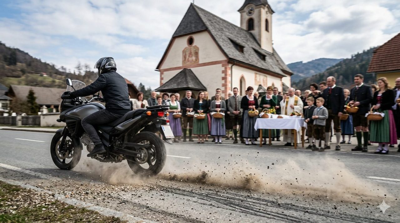 هروب هوليودي في ليوبن شتايرمارك.. شاب يقتحم مراسم “مباركة الفصح” بدراجته النارية