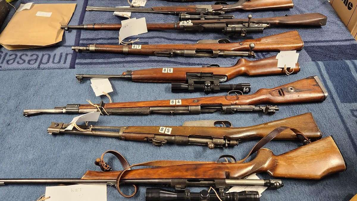 تم العثور على أكثر من 70 قطعة سلاح تشمل بنادق صيد وكاربينات إيطالية Mannlicher-Carcano وألمانية K-98، إضافة إلى بندقية هجومية من نوع Kalaschnikow ورشاش MG 42 يعود للحرب العالمية الثانية. كما تم ضبط أكثر من 5000 طلقة ذخيرة ومواد متفجرة وكيميائية تُستخدم في صناعة الألعاب النارية.