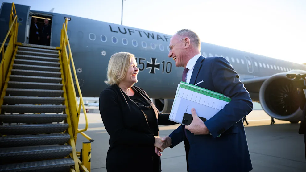 انطلقت وزيرة الداخلية الألمانية نانسي فايسر (54 عامًا، الحزب الاشتراكي الديمقراطي) صباح الأربعاء في رحلة رسمية، حيث استقلت طائرة عسكرية تابعة لسلاح الجو الألماني متوجهة إلى فيينا، هناك، انضم إليها نظيرها النمساوي المحافظ غيرهارد كارنر (57 عامًا، حزب الشعب النمساوي)، ومن المقرر أن تستمر رحلتهما معًا إلى الأردن، حيث من المتوقع أن تهبط الطائرة في العاصمة عمّان حوالي الساعة الثانية عشرة ظهرًا.