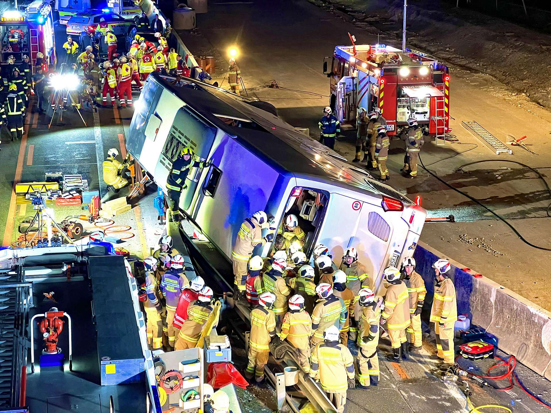 هرع رجال الإطفاء من شمال سالزبورغ وجنوب غرب النمسا العليا إلى مكان الحادث بعد الحادث في الليل، كما وصف قائد منطقة فلاشغاو لرجال الإطفاء كلاوس لوجستين: