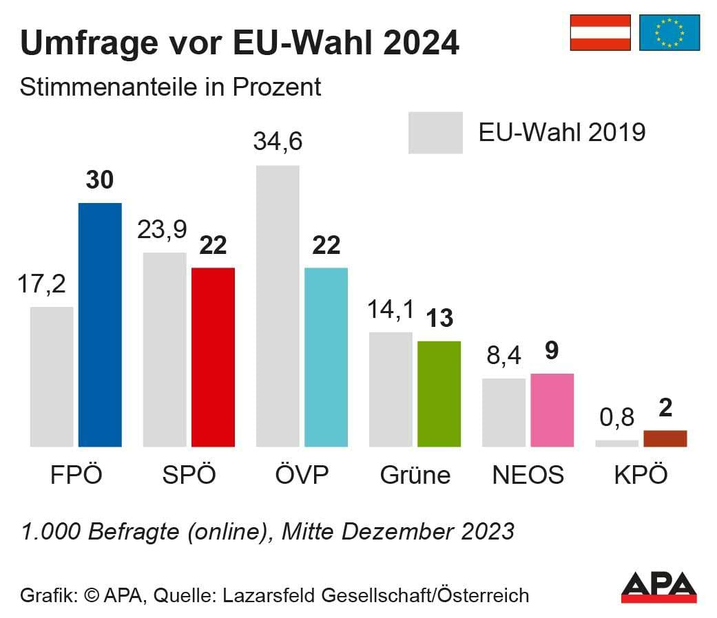 تصدر حزب الحرية النمساوي (FPÖ) استطلاعات الرأي منذ بداية عام 2023 بنسبة تقدر بحوالي 30 في المئة, وفيما يتعلق بالانتخابات المقبلة في عام 2024، ستشهد النمسا انتخابات جديدة للبرلمان الوطني، إضافة إلى الانتخابات الأوروبية في 9 يونيو، وانتخابات لبرلماني ولايتي فورارلبرغ وشتايرمارك، بالإضافة إلى انتخابات مجالس البلدية ورؤساء البلديات في سالزبورغ وإنسبروك.