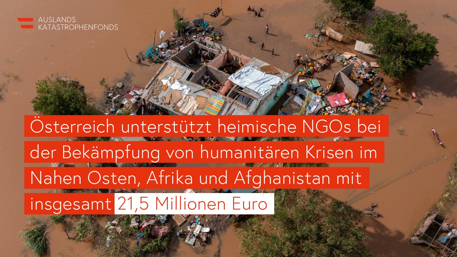 وتم توجيه واحدة من أكبر المدفوعات من صندوق الكوارث الخارجية التابع لوزارة الخارجية لعمل المنظمات غير الحكومية النمساوية في مناطق الأزمات الإنسانية، وهو قرار اتخذه الاجتماع الأسبوعي لمجلس الوزراء برئاسة المستشار الفيدرالي كارل نيهامر اليوم.