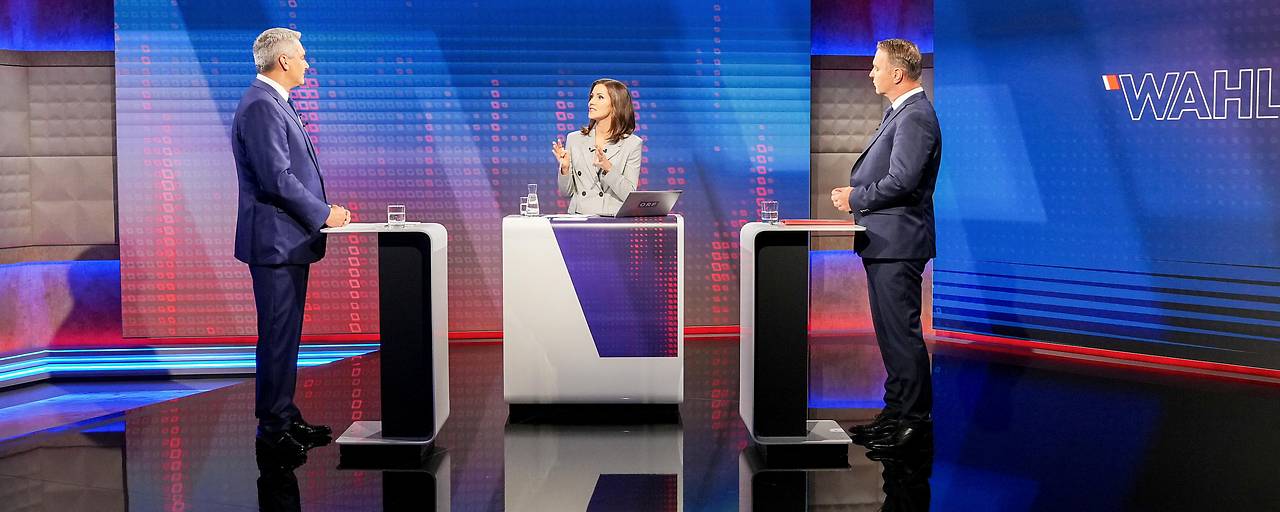 في أول مناظرة تلفزيونية لقناة ORF، التي جرت مساء الخميس، 17 يومًا قبل الانتخابات البرلمانية، التقى كارل نيهامر، رئيس حزب الشعب النمساوي (ÖVP)، وأندرياس بابلر، رئيس الحزب الاشتراكي النمساوي (SPÖ)، حيث هدف كلاهما هو قيادة الحكومة المقبلة كأول مستشار، ومع ذلك، كان النقاش مليئًا بالتجاذبات والمقاطعات، بينما نادراً ما تم التطرق إلى المواقف الفكرية بوضوح.