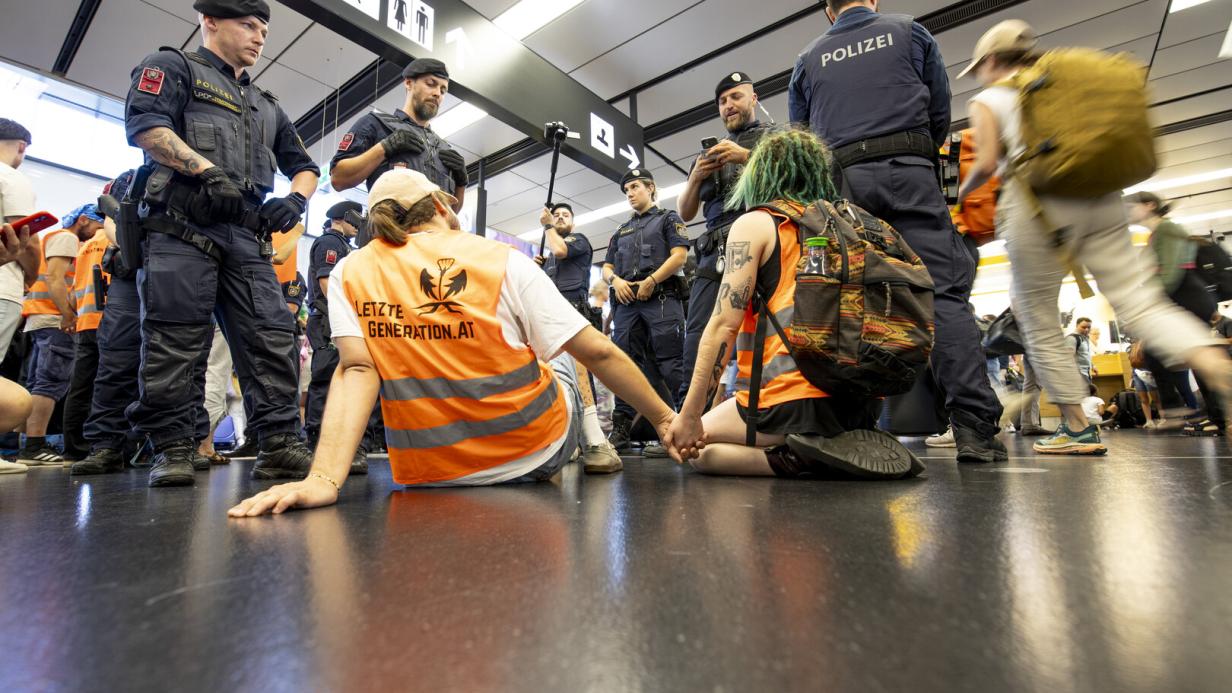 في الصيف الماضي، قامت مجموعة من أربعة ناشطين من منظمة “الجيل الأخير” برمي ألوان على الأرض في المبنى رقم 3 في مطار فيينا، والآن، يواجهون عواقب قانونية بسبب ذلك.