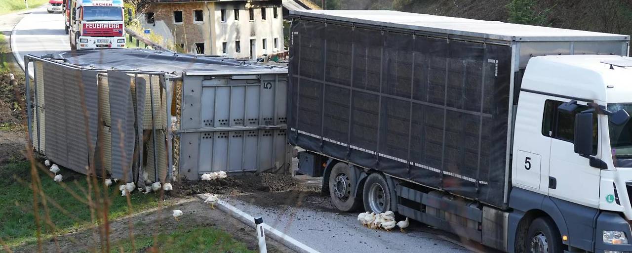 انقلبت شاحنة محملة بالدجاج في باد مولهاكِن بالقرب من فيلدكيرشن آن دير دوناو (منطقة أورفهر-أومغيبونغ) في النمسا العليا، صباح يوم الجمعة، وكانت الشاحنة محملة ب 9000 دجاجة، وكان حوالي نصفها في المقطورة التي انقلبت، واضطرت فرق الإطفاء إلى اصطياد بعض الحيوانات.