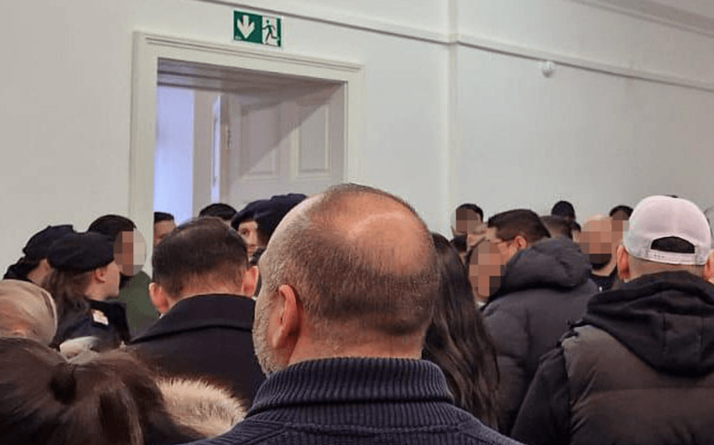 احتمالًا، استدعت نائبة رئيس المحكمة الإقليمية Christina Salzborn بعض ضباط الشرطة من محاكمة المستشار السابق سيباستيان كورتز المتزامنة، وتدخل الضباط بحكمة، لكن بحزم، لضمان الهدوء وسمحوا للمتهم والمحامي Elmar Kresbach بمغادرة مبنى المحكمة دون مضايقات.