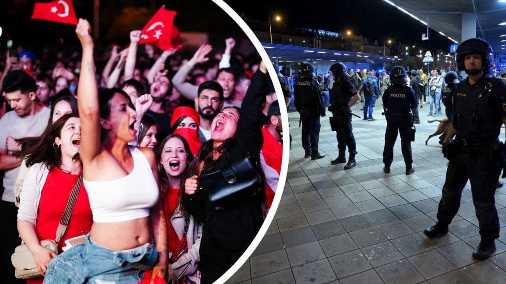 وفي المقابل، سارت احتفالات مشجعي المنتخب التركي في منطقة “فافرين” بفيينا، بهدوء نسبي، دون وقوع أي حوادث تذكر، ووفقًا لرئيس الجالية التركية في النمسا، بيرول كيليتش، فقد شارك في هذه الاحتفالات العفوية، التي تركزت بين ساحة “كايبلر بلاتز” وساحة “رويمان بلاتز”، قرابة ألف شخص.