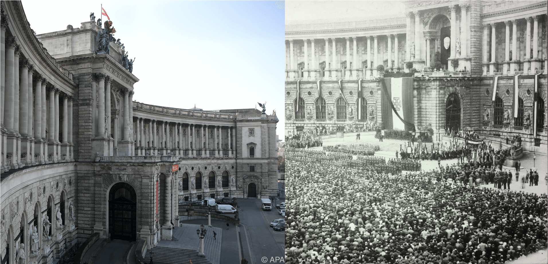 وبعد خمسة وثمانين عاما على ضمّ ألمانيا النازية النمسا إلى أراضيها في مارس/آذار 1938، ينظم متحف بيت التاريخ النمساوي (HDGÖ) سلسلة من الجلسات “لتبديد الغموض” المحيط بهذه الشرفة الواسعة المحاطة بأعمدة من الطراز النيوكلاسيكي.