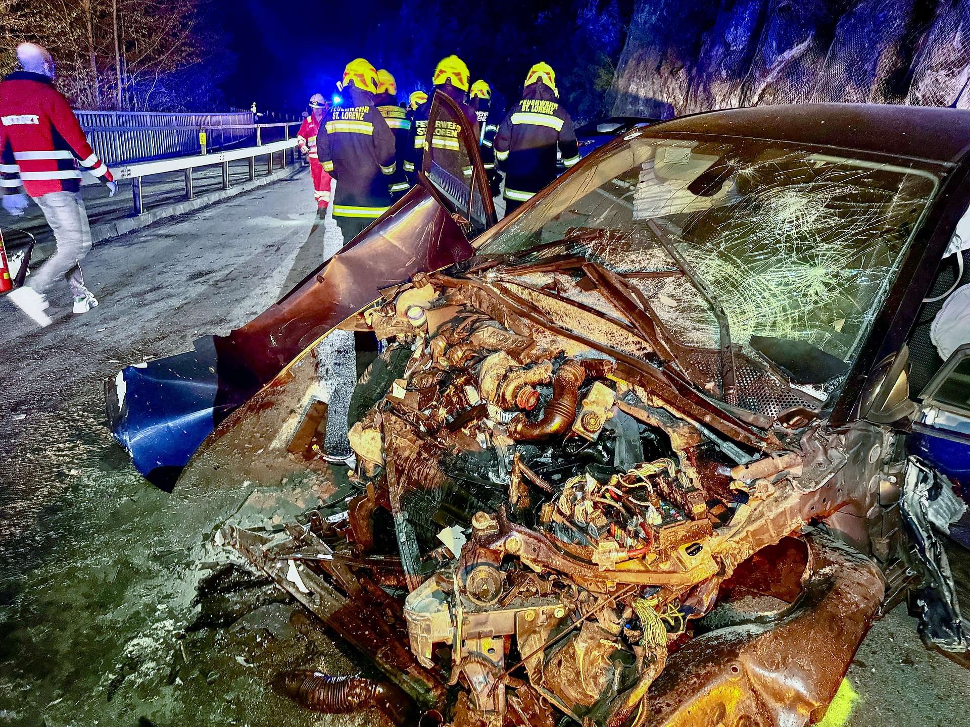 “عندما وصلنا إلى مكان الحادث، كان علينا أولاً تكوين صورة واضحة للموقف، حيث كانت المركبات الأربع المتضررة منتشرة على طريق B 154،” قال فولفغانغ شاشل، قائد اطفاء St. Lorenz، واصفًا الحادث بأنه “حطام غير واضح”.