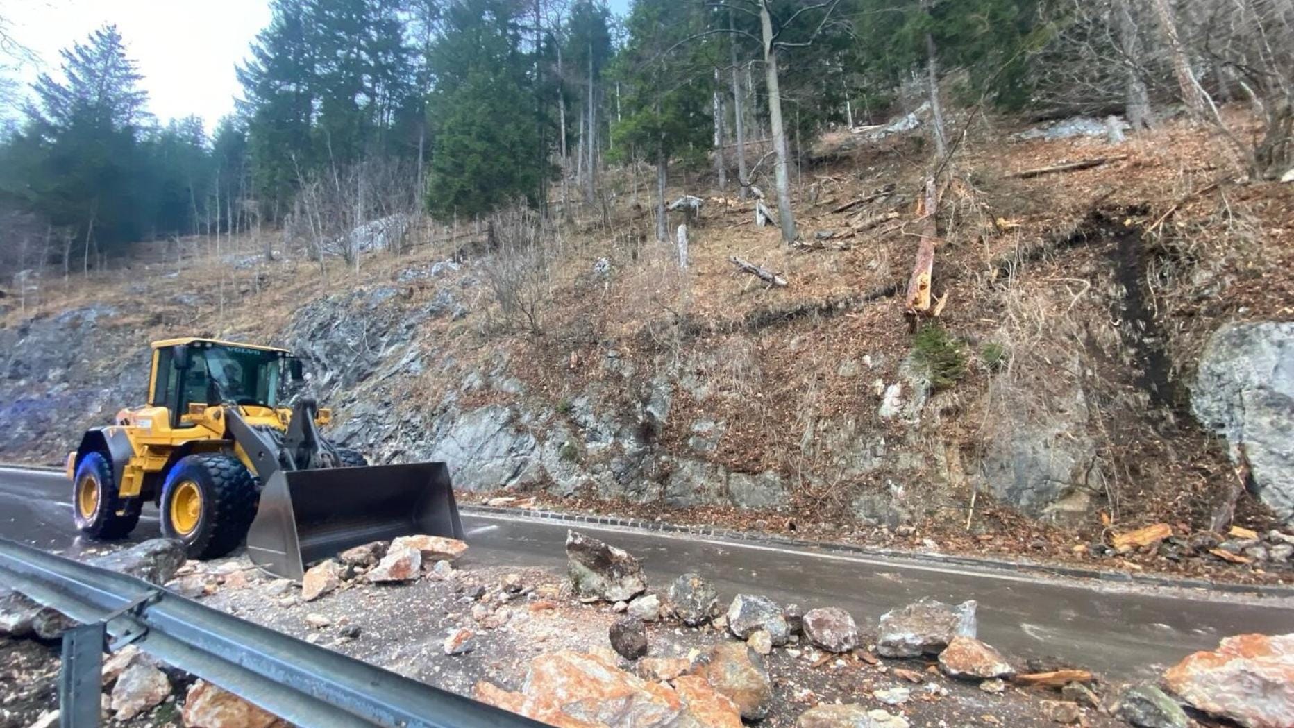 سقطت صخور ضخمة على طريق هولنتال B27 بالقرب من ناسوالد في منطقة نينكيرشن، في النمسا السفلى، ولذلك تم إنشاء مسار بديل.