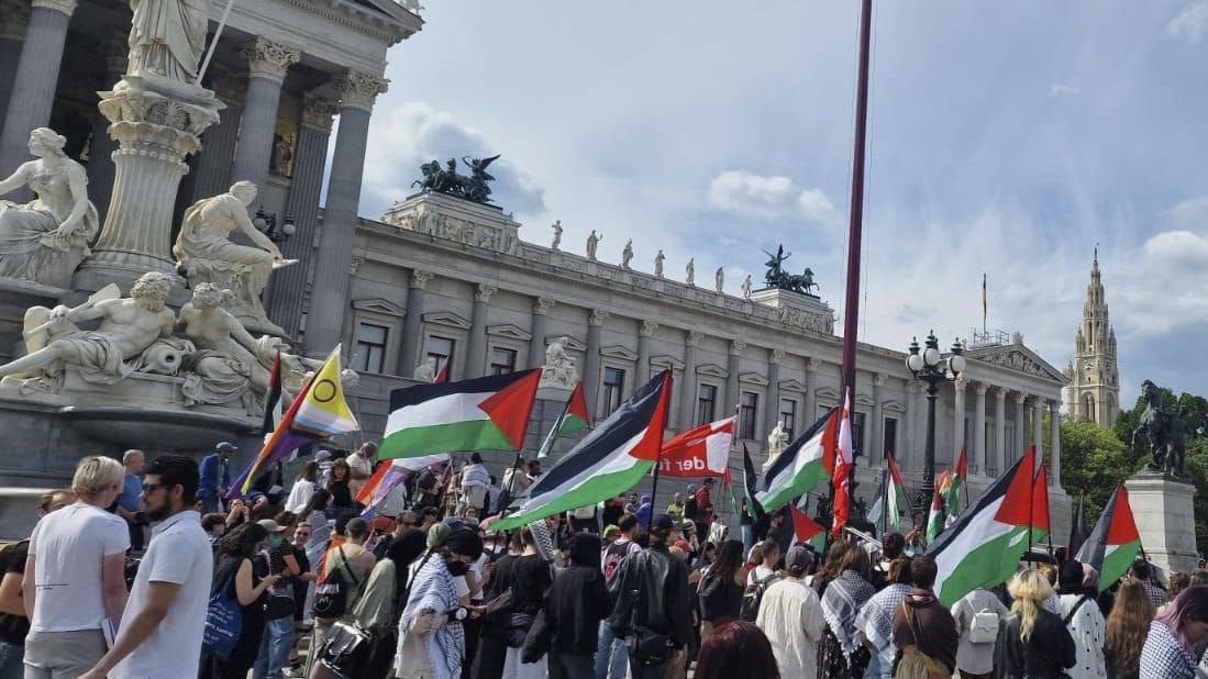 شهدت ساحة البرلمان في فيينا هذا اليوم مظاهرة معادية لإسرائيل، حيث اجتمع حوالي 200 شخص على شارع المدينة القديم، حيث تم رفع عشرات الأعلام الفلسطينية.