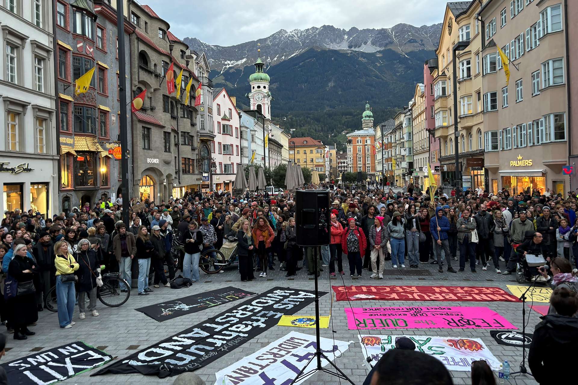 وبحسب وكالة الأنباء النمساوية (APA)، تمت الدعوة إلى التظاهرة عبر وسائل التواصل الاجتماعي، حيث تجمع المحتجون عند Anna-Säule في إنسبروك. عادة ما يتعين إبلاغ السلطات عن مثل هذه التجمعات كتابياً قبل 48 ساعة من موعدها، لكن المنظمين أوضحوا أن القرار بتنظيم التظاهرة جاء بعد الانتخابات التي جرت يوم الأحد، مما جعل التسجيل الرسمي غير ممكن في الوقت المحدد.