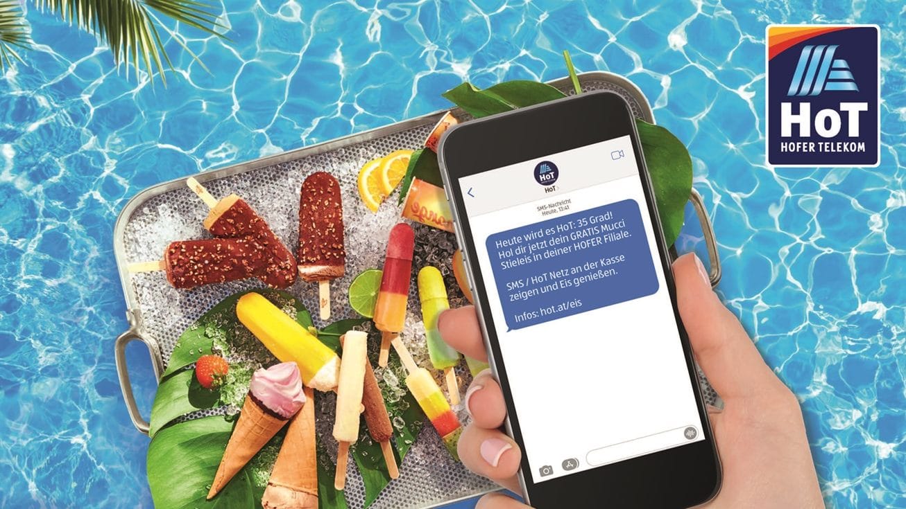 وسيتلقى عملاء HoT رسالة نصية تخولهم الحصول على آيس كريم MUCCI مجاني من نوع العصا أو المثلج المخروطي من فروع Hofer.