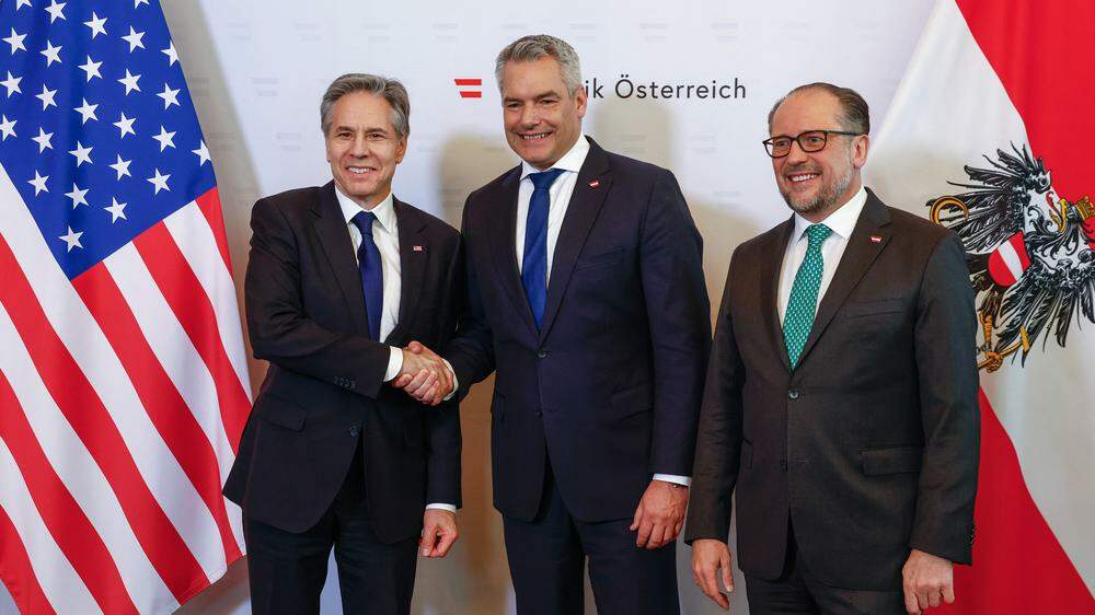 والتقى السياسي الأمريكي البارز يوم الجمعة، إلى جانب وزير الخارجية النمساوي، أيضًا المستشار النمساوي كارل نيهامر (حزب الشعب النمساوي) ورئيس الجمهورية النمساوية ألكسندر فان دير بيلين في جلسة عمل، وأفاد بلينكن وشالنبرغ خلال مؤتمر صحفي مشترك بأنه تم تبادل الآراء بشأن الوضع في الشرق الأوسط وأوكرانيا وعلى الساحل الغربي للبلقان.