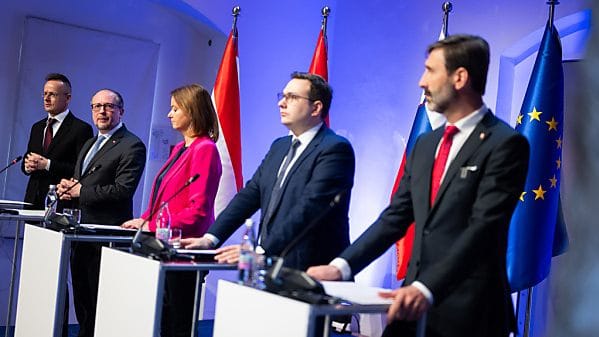ناقش وزراء خارجية النمسا وسلوفينيا مع نظرائهم من جمهورية التشيك (يان ليبافسكي) والمجر (بيتر سيجارتو) وسلوفاكيا (يوراج بلانار) في اجتماعهم الحادي عشر في هذا الشكل، يوم الثلاثاء، أيضًا تقارب دول غرب البلقان مع الاتحاد الأوروبي والهجرة غير الشرعية والحرب في أوكرانيا.
