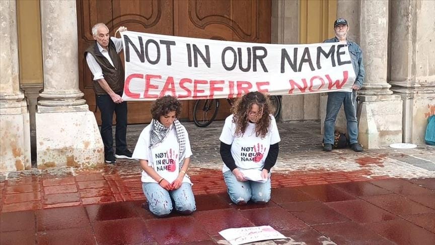 احتجاج بالدماء أمام معهد قرب فيينا أعلن زيادة التعاون مع إسرائيل