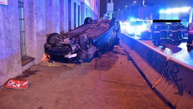 حادث يؤدي إلى انقلاب سيارة واصطدامها بمنزل في فيينا ويوقع إصابات طفيفة